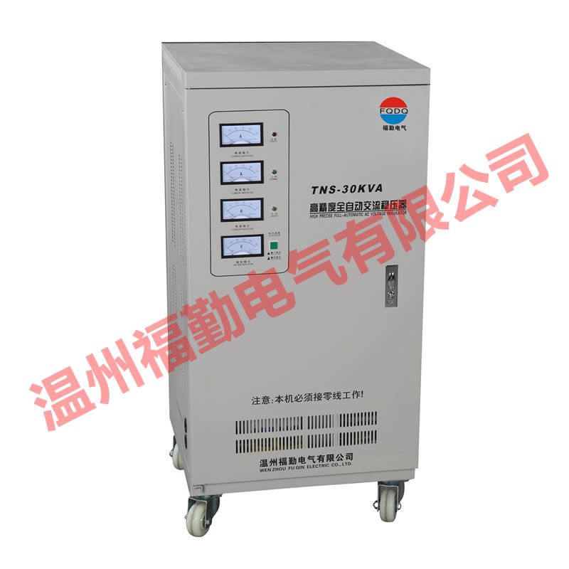 TNS系列三相高精度全自動交流穩(wěn)壓器是單相系列高精度全自動交流穩(wěn)壓器的組合.電網(wǎng)輸入為三相四線制,星形(Y形)接法,輸出亦為三相四線制,由兩只電壓表分別指示輸入與輸出電壓,分數(shù)顯與指針式。